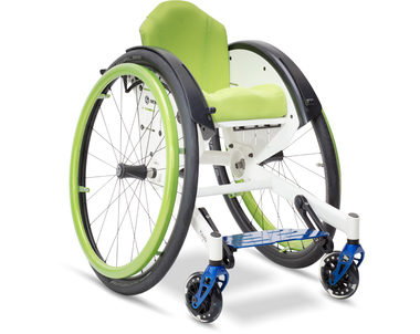Im HighLine Design mit farbigem Sitz- und Rückenpolster sowie farbigen Fußbrett und Greifreifen