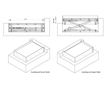Der Bodenlift HDN ist völlig „unsichtbar” im unteren Niveau eingebaut. Von der oberen und der unteren Etage kann der Lift durch einen Knopfdruck aktiviert werden - ein Teil der Bodenfläche „verwandelt” sich in einen Plattformlift, mit dem der Rollstuhlfahrer die vorhandene Höhendifferenz einfach und selbständig überwinden kann.