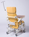 Klinikstuhl für den Transport von Patienten vor oder nach der Behandlung. Mit hydraulisch verstellbarer Rückenlehne und Sitzkantelung, sowie manuell einstellbarer Beinauflage. Das Fußbrett lässt sich nach Wunsch ein- oder ausziehen. Die höhenverstellbaren Armlehnen lassen sich für einen seitlichen Transfer komplett absenken. Die Schaumstoffpolsterung von Sitz und Rücken unterstützen das ermüdungsfreie Sitzen und Lagern.