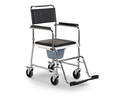 Der HCDA Toilettenrollstuhl mit verchromten Rahmen ist langlebig und robust. Insbesondere in Umgebungen, in denen erhöhte Sauberkeit entscheidend ist, kann die stoßunempfindliche Oberfläche punkten. Die serienmäßige Ausstattung beinhaltet ebenfalls eine weiße, im Mittelteil ausgeschnittene Sitzplatte, und eine gepolsterte, geschlossene Sitzauflage.