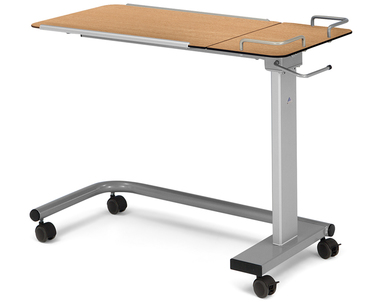 Dank seiner Beweglichkeit ist der Beistelltisch im Pflegealltag vielfältig einsetzbar. Je nach Bedarf kann er an Betten, Stühle oder Pflegesessel herangeschoben werden.